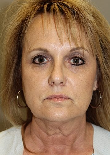 A 56 year old female asked to regain a more youthful appearance to her face. A face and neck lift was performed in order to attain this look. Significant improvement is noted as well as a natural appearance.