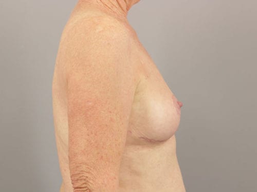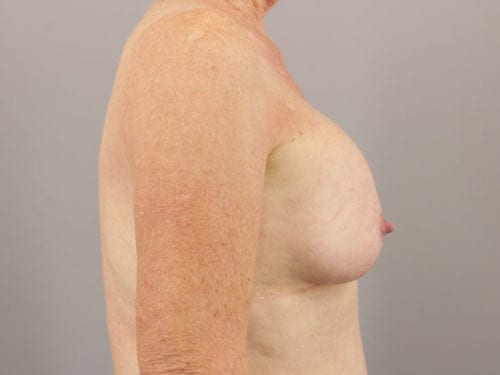 This 64 year old female has silicone gel implants placed in 1990. She developed severe capsular contractures causing disfigurement of her breast as well as tightness. She desired implant removal but also requested a breast lift. Both were performed with excellent results.