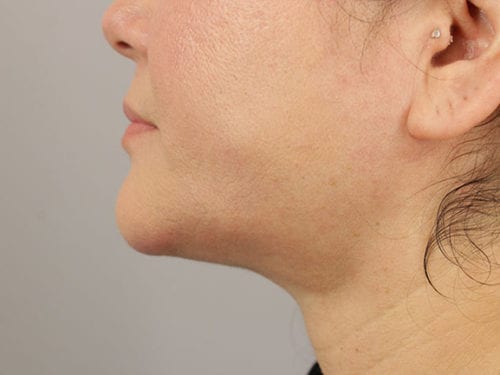 A 55 year old female presented to my office with excess adipose tissue of the neck and cheeks after progressive weight gain in the past 7 years. I performed standard tumescent liposuction to both areas with significant improvement.