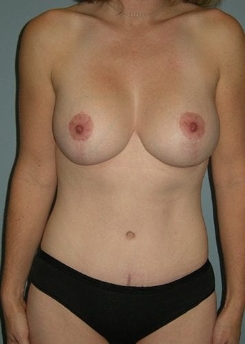 A mommy makeover was requested by this mother of two. Her concerns included breast sagging and loss of volume as well as loose skin of her tummy. My examination also revealed separation of her tummy rictus muscles. Tummy tuck, breast lift and silicone implant placement was performed. A significant improvement was attained as scars are fading nicely after one year.