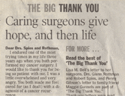 This letter comes to you long overdue and with many heartfelt thanks. I have debated for the past year on whether or not I should bother sending this letter to you. I didn’t know if you would still remember me or would want to know how a previous patient is doing. However, I thought it was important for you to know what a wonderful thing you did as a physician and continue to do. Not every patient says ‘thank you’ but this one will forever.